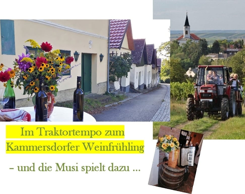 Nach der gemütlichen Anreise mit dem ErlebnisZug Leiser Berge nach Ernstbrunn geht es das kurze Stück nach Kammersdorf mit dem Bus weiter. Dort heißt es Aufsitzen! – Das Traktorgespann bringt uns zu den geheimnisvollen Kellergassen, voll mit Geschichten und G´schichtln. Bei dieser unterhaltsamen Erlebnistour mit Kellergassenführerin Ilse Gritsch zieht es uns auch erdwärts in die Welt der Köllamauna – in die Kellerröhren. Mit einem guten Achterl Kammersdorfer in der Hand wird dieser Rundgang durch diesen stimmungsvollen Ort der Begegnung zwischen Mensch und Wein endgültig zu einem Schlüsselerlebnis für alle Sinne.
